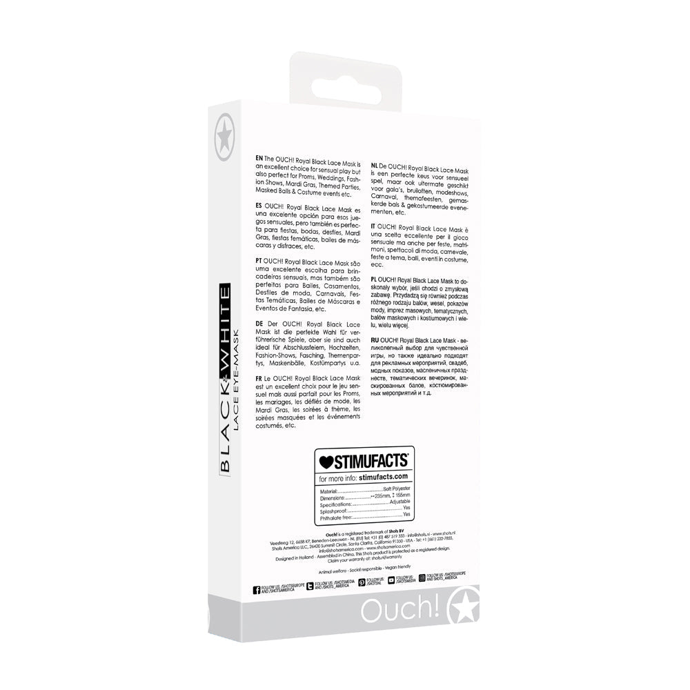 Ouch! Black & White Royal Lace Eye Mask Black is backordered and will ship as soon as it is back in stock.