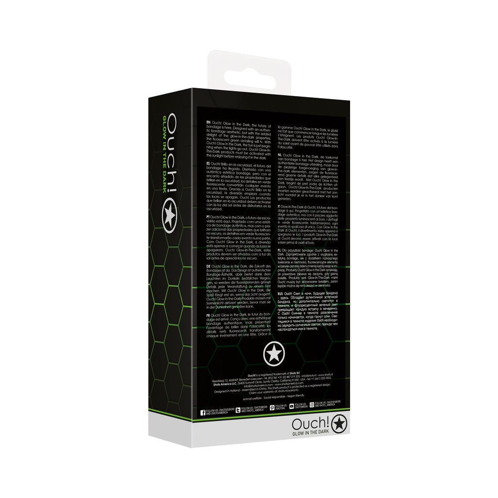 Ouch! Glow in the Dark, the future of bondage is here. Designed with an authentic bondage aesthetic, but with the added delight of the glow-in-the-dark properties, the fluorescent green detailing will turn every event into a part. With Ouch! Glow in the Dark, the fun is just beginning when the lights go out. Sometimes less is more, and this sexy harness is there to prove it! Make a statement with this full body harness. The harness is adjustable so it fits all body types. Ouch! Glow-In-The-Dark products must be activated with the sunlight before enjoying it in the dark. Weight package 6.6 oz Phthalate free Yes Materials 70% Polypropylene Fiber, 25% Latex Thread, 5% Metal
