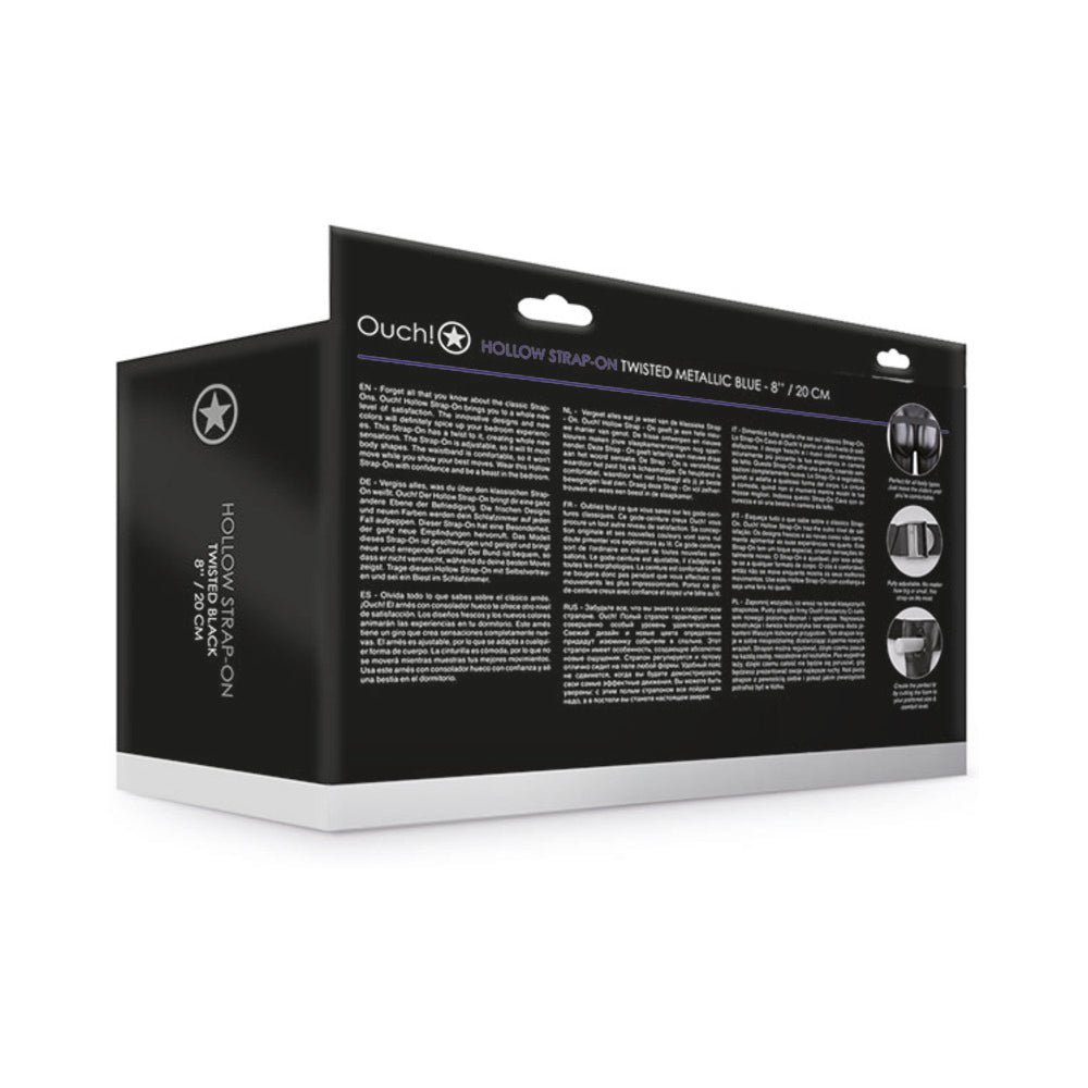Ouch! Textured Curved 8 inches Hollow Strap-On Metallic Blue
