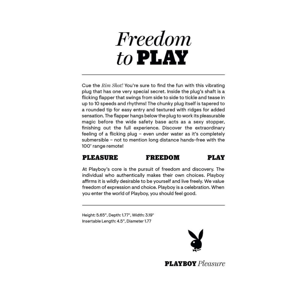 The Playboy Pleasure Rim Shot 2 Anal Plug takes backdoor bliss to a whole new level with its unique flicking motion and powerful vibrations. Expertly crafted from body-safe silicone, the Playboy Pleasure Rim Shot 2 Anal Plug combines classic shape and modern innovation, delivering sensations that tease, pulse, and thrill in perfect harmony.