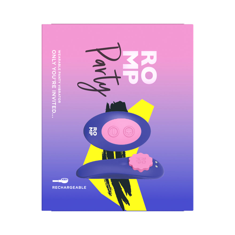 The ROMP Party Wearable Panty Vibrator Purple brings thrilling clitoral pleasure wherever the mood strikes. This discreet, remote-controlled panty vibrator offers seven powerful intensity levels for hands-free stimulation during solo play or exciting partner adventures. Its body-safe silicone design feels silky against your skin, while the magnetic clip keeps it snugly in place inside your panties for comfortable, effortless wear.