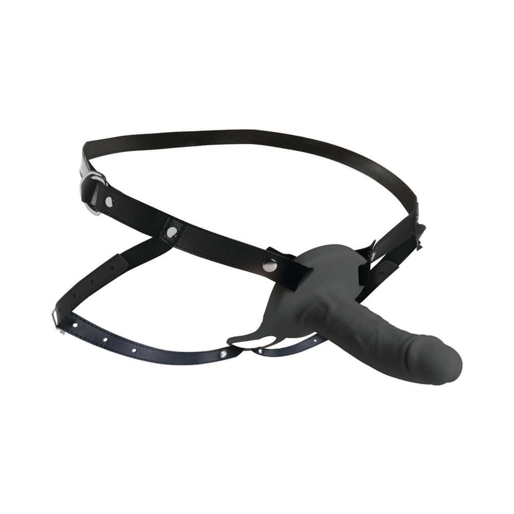 Make your partner's fantasies come true and add length and girth to your rod! With this Smooth Silicone Penis Sheath, you can slip your rod into the sheath and enjoy giving them the full monty! It's perfect for those with ED, too! Stay hard with this wearable sheath even when you climax! Stretch them wide and ride them hard with this firm, comfortable, premium silicone penis sheath. Its silky smooth texture, veiny shaft and circumcised gives this fantasy rod a realistic look and feel! The base of the sheath is plush and can handle hard pounding. Below the base is a stretchy ring to wrap around the testicles and help keep it in place as it gently tugs on the balls. The PU leather harness is easy to adjust and connects to the silicone sheath at the top of the base and at the ball ring. Use the nickel-free, metal belt buckles that reach around the thighs and waist to cinch it tight for a comfortable fit every time. Make your dream dong fantasies come true!Grab the water-based lube and your partner. Then slip the harness on and tighten the straps. For a more comfortable fit for your dong, add some lube into the sheath before you insert your own rod. Then, lube up your partner and let them guide your bigger dong inside. As you get them stretched open, enjoy them moaning and yelling for more! If you get excited too quickly and blow your load early, the firm sheath will stay hard so you can keep giving your partner the ride of a lifetime without taking a pause!After play is over, wash the sheath in warm water and mild soap, then spray with a toy cleaner. Pat the sheath dry and then let it air dry completely. Keep out of direct sunlight and out of contact with other silicone toys. Spray the PU leather with toy cleaner and wipe clean. Hollow Body with Solid Tip and Ball Ring: Insert your penis into the hollow sheath. At the end of the sheath is a 2 inch tip with a round head that adds length along with the girth of the sheath to your sha' At the base of the sheath is a stretchy ring to wrap around your balls and help keep the sheath in place. Fully Adjustable Harness: Use the PU leather straps and metal belt buckles to adjust for the perfect fit around the waist and thighs. The thigh straps connect to the waist belt and to the silicone ball ring between the thighs. Premium Silicone: Enjoy this silky, smooth, premium silicone dildo. Use only with water-based lubricants. Realistic Fantasy Role Play: Give your partner the experience of a bigger, longer dong with this hollow strap-on! This design makes your dong look like a big, meaty, veiny shaft with a circumcised head. Measurements: HARNESS: Waist adjusts up to 48 inches in circumference. Thighs adjust from 13 inches to 27.5 inches in length. DILDO: Insertable length: 6.3 inches. Widest insertable diameter: 1.8 inches. Inner depth: 5.5 inches. Materials: Silicone, PVC, metal Note: Use only with water-based lubricants.