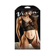 Vixen Call Me Yours Longline Bralette With Grommets & Thong Panty Black L/XL